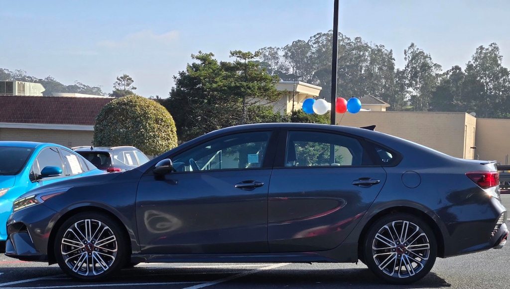 Clean CARFAX. CARFAX One-Owner. Certified. Gravity Gray 2022 Kia Forte GT FWD 7-Speed Automatic 1.6L 4-Cylinder 112 POINT INSPECTION, NAVIGATION, 4-Wheel Disc Brakes, 6 Speakers, ABS brakes, Air Conditioning, Alloy wheels, AM/FM radio: SiriusXM, Apple CarPlay & Android Auto, Auto High-beam Headlights, Automatic temperature control, Brake assist, Cloth & Leatherette Seat Trim, Delay-off headlights, Dual front impact airbags, Dual front side impact airbags, Electronic Stability Control, Emergency communication system: UVO eServices, Exterior Parking Camera Rear, Four wheel independent suspension, Front anti-roll bar, Front Bucket Seats, Front Center Armrest, Front dual zone A/C, Front Sport Seats, Fully automatic headlights, Heated door mirrors, Leather Shift Knob, Leather steering wheel, Low tire pressure warning, Navigation System, Occupant sensing airbag, Outside temperature display, Overhead airbag, Panic alarm, Power door mirrors, Power steering, Power windows, Radio data system, Radio: UVO Link Audio System, Rear anti-roll bar, Rear window defroster, Remote keyless entry, Security system, Speed control, Split folding rear seat, Sport steering wheel, Steering wheel mounted audio controls, SynTex Seat Trim, Tachometer, Telescoping steering wheel, Tilt steering wheel, Traction control, Trip computer, Turn signal indicator mirrors, Variably intermittent wipers, Wheels: 18" Machine Finish Alloy.