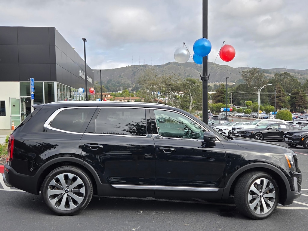 CARFAX One-Owner. Certified. Ebony Black 2022 Kia Telluride EX AWD 8-Speed Automatic 3.8L V6 DOHC 112 POINT INSPECTION, NAVIGATION, 20" x 7.5" Machined Alloy Wheels, 2nd Row Captain Chairs, 3rd row seats: split-bench, 4-Wheel Disc Brakes, 6 Speakers, ABS brakes, Air Conditioning, Alloy wheels, AM/FM radio: SiriusXM, Apple CarPlay & Android Auto, Auto-dimming Rear-View mirror, Automatic temperature control, Brake assist, Chrome Wheel Lock, Compass, Delay-off headlights, Dual front impact airbags, Dual front side impact airbags, Electronic Stability Control, Emergency communication system: 911 Connect, EX Premium Package, Four wheel independent suspension, Front anti-roll bar, Front Bucket Seats, Front Center Armrest, Front dual zone A/C, Fully automatic headlights, Heated & Ventilated Front Bucket Seats, Heated door mirrors, Heated front seats, Heated steering wheel, Knee airbag, Leather Seat Trim, Leather Shift Knob, Leather steering wheel, LED Headlamps, Low tire pressure warning, Navigation System, Occupant sensing airbag, Outside temperature display, Overhead airbag, Panic alarm, Power door mirrors, Power driver seat, Power Liftgate, Power moonroof, Power passenger seat, Power steering, Power windows, Radio data system, Radio: AM/FM Display Audio System, Rear air conditioning, Rear anti-roll bar, Rear audio controls, Rear window defroster, Rear window wiper, Reclining 3rd row seat, Remote keyless entry, Satin Chrome Roof Rails, Security system, Self Leveling Rear Suspension, Smart Key w/ Push Button and Remote Start, Speed control, Speed-sensing steering, Split folding rear seat, Steering wheel mounted audio controls, Tachometer, Telescoping steering wheel, Tilt steering wheel, Tow Hitch w/Harness (TOF), Towing Package, Traction control, Trip computer, Turn signal indicator mirrors, Variably intermittent wipers, Ventilated front seats, Wheels: 18" x 7.5" Machined Alloy.