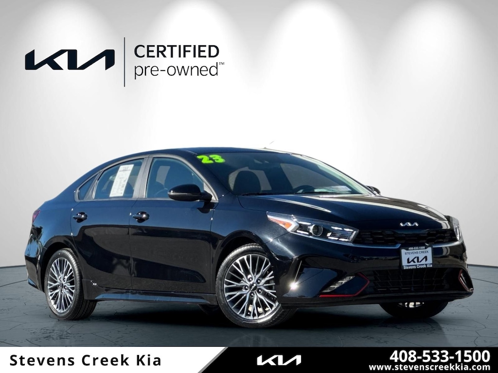 Certified. CARFAX One-Owner. 2023 Kia Forte GT-Line Aurora Black Pearl FWD CVT 2.0L I4 MPI