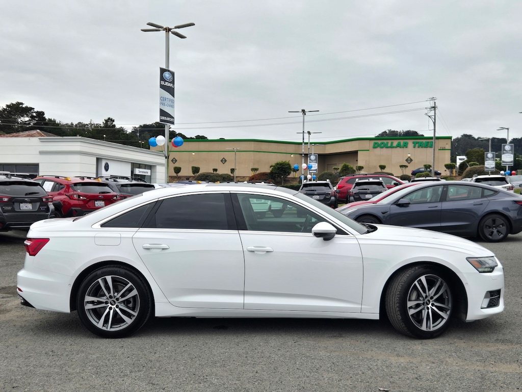 Clean CARFAX. Ibis White 2023 Audi A6 45 Premium 45 TFSI quattro 7-Speed Automatic 2.0L 4-Cylinder TFSI 112 POINT INSPECTION, NAVIGATION, quattro, Black Leather, 10 Speakers, ABS brakes, Air Conditioning, Alloy wheels, AM/FM radio: SiriusXM w/ 360L, Auto High-beam Headlights, Auto tilt-away steering wheel, Auto-dimming door mirrors, Auto-dimming Rear-View mirror, Automatic temperature control, Brake assist, Compass, Delay-off headlights, Dual front impact airbags, Dual front side impact airbags, Electronic Stability Control, Exterior Parking Camera Rear, Four wheel independent suspension, Front Bucket Seats, Front Center Armrest, Front dual zone A/C, Garage door transmitter: HomeLink, Genuine wood console insert, Genuine wood dashboard insert, Genuine wood door panel insert, Heated door mirrors, Heated Front Seats, Heated front seats, Illuminated entry, Leather Seating Surfaces, Leather Shift Knob, Leather steering wheel, Low tire pressure warning, Memory seat, Navigation system: MMI Navigation plus, Outside temperature display, Panic alarm, Power door mirrors, Power driver seat, Power moonroof, Power passenger seat, Power steering, Power windows, Radio data system, Radio: Audi MMI Nav Plus w/MMI Touch Response, Rain sensing wipers, Rear air conditioning, Rear window defroster, Remote keyless entry, Security system, Speed control, Speed-sensing steering, Speed-Sensitive Wipers, Split folding rear seat, Steering wheel memory, Steering wheel mounted audio controls, Tachometer, Telescoping steering wheel, Tilt steering wheel, Traction control, Trip computer, Turn signal indicator mirrors, Variably intermittent wipers, Wheels: 19" Bi-Color Finish 5-Double-Spoke-Design.