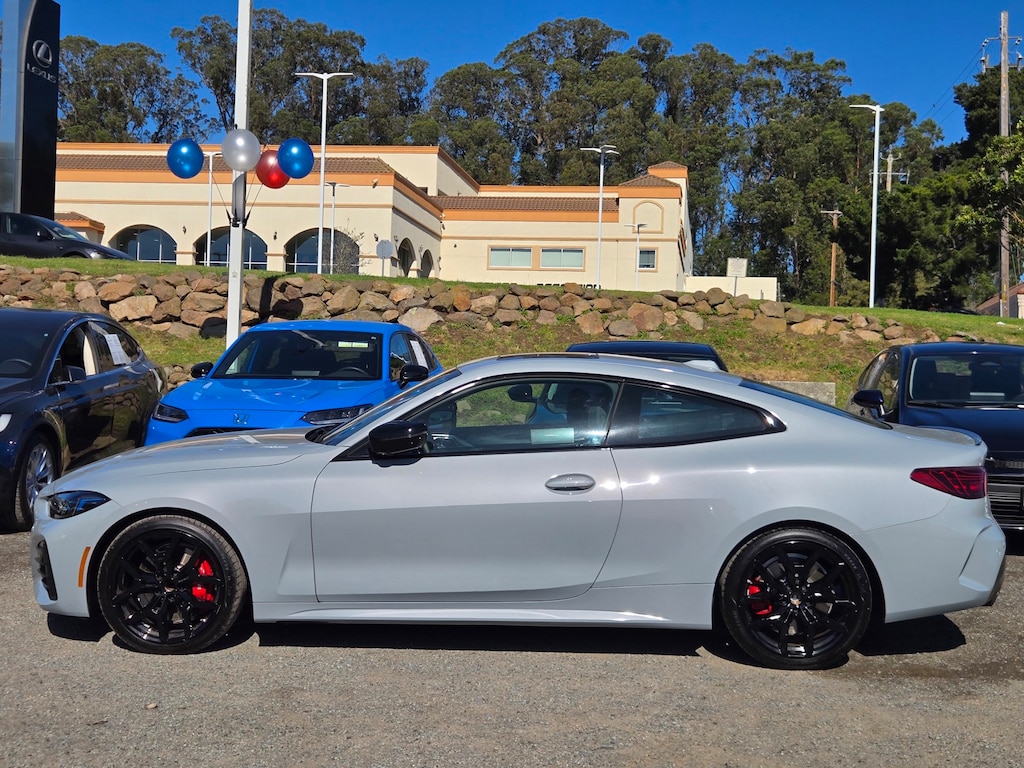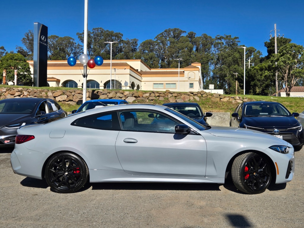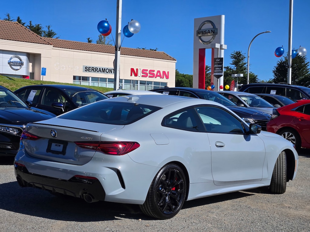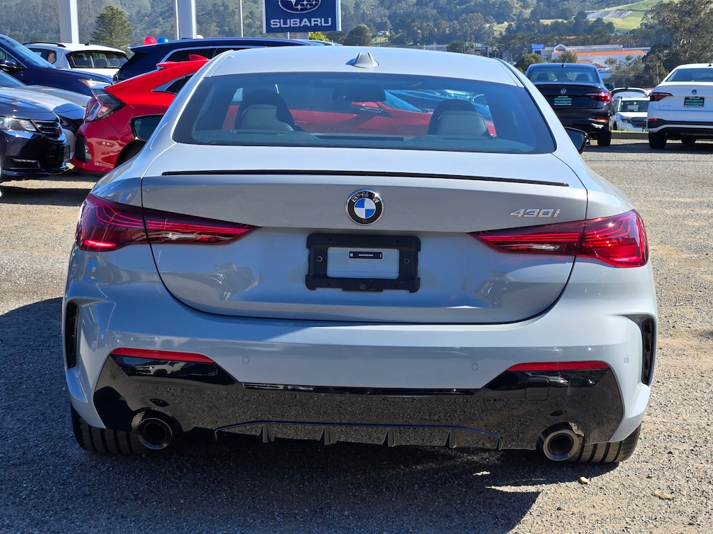 Clean CARFAX. CARFAX One-Owner. Brooklyn Grey Metallic 2025 BMW 4 Series 430i RWD 8-Speed Automatic Sport 2.0L 4-Cylinder TwinPower Turbo 112 POINT INSPECTION, NAVIGATION, 10 Speakers, 4-Wheel Disc Brakes, 48V Mild Hybrid System, ABS brakes, Active Cruise Control, Aerodynamic Kit, Air Conditioning, Alloy wheels, AM/FM Radio, AM/FM radio: SiriusXM with 360L, Apple CarPlay & Android Auto Compatibility, Audio memory, Auto High-beam Headlights, Auto-dimming door mirrors, Auto-dimming Rear-View mirror, Automatic temperature control, Black Mirror Caps, BMW Assist eCall, BMW TeleServices, Brake assist, Comfort Access Keyless Entry, Compass, Connected Package Pro, ConnectedDrive Services, Convenience Package, Delay-off headlights, Driving Assistance Package, Dual front impact airbags, Dual front side impact airbags, Electronic Stability Control, Emergency communication system: BMW Assist eCall, Extended Shadowline Trim, Exterior Parking Camera Rear, Four wheel independent suspension, Front anti-roll bar, Front Bucket Seats, Front Center Armrest, Front dual zone A/C, Full LED Headlights w/Laserlight Taillights, Fully automatic headlights, Garage door transmitter, Genuine wood console insert, Genuine wood dashboard insert, Heated door mirrors, Heated Front Seats, Heated front seats, Heated Steering Wheel, Hi-Fi Sound System, HVAC memory, Illuminated entry, Knee airbag, Leather steering wheel, Low tire pressure warning, Lumbar Support, M Shadowline Lights, M Sport Package, M Sport Package (337), M Sport Package Pro, M Sport Suspension, M Steering Wheel, Memory seat, Navigation, Navigation System, Occupant sensing airbag, Outside temperature display, Overhead airbag, Panic alarm, Perforated SensaTec Upholstery, Personal eSIM 5G, Power door mirrors, Power driver seat, Power Front Seats, Power moonroof, Power passenger seat, Power steering, Power windows, Radio data system, Rain sensing wipers, Rear anti-roll bar, Rear Spoiler, Rear window defroster, Remote Engine Start, Remote keyless entry, Security system, Shadowline Exterior Trim, Shadowline Package, SiriusXM w/360L, Speed control, Speed-sensing steering, Speed-Sensitive Wipers, Split folding rear seat, Sport Seats, Sport steering wheel, Steering wheel mounted audio controls, Tachometer, Telescoping steering wheel, Tilt steering wheel, Traction control, Trip computer, Turn signal indicator mirrors, Variably intermittent wipers, Wheels: 18" x 7.5" V-Spoke Bicolor, Wheels: 19" x 8" Fr & 19" x 8.5" Rr M Dual-Spoke, Wheels: 19" x 8" M Dual-Spoke Bicolor, Widescreen Display, Wireless Device Charging, Without Lines Designation Outside.