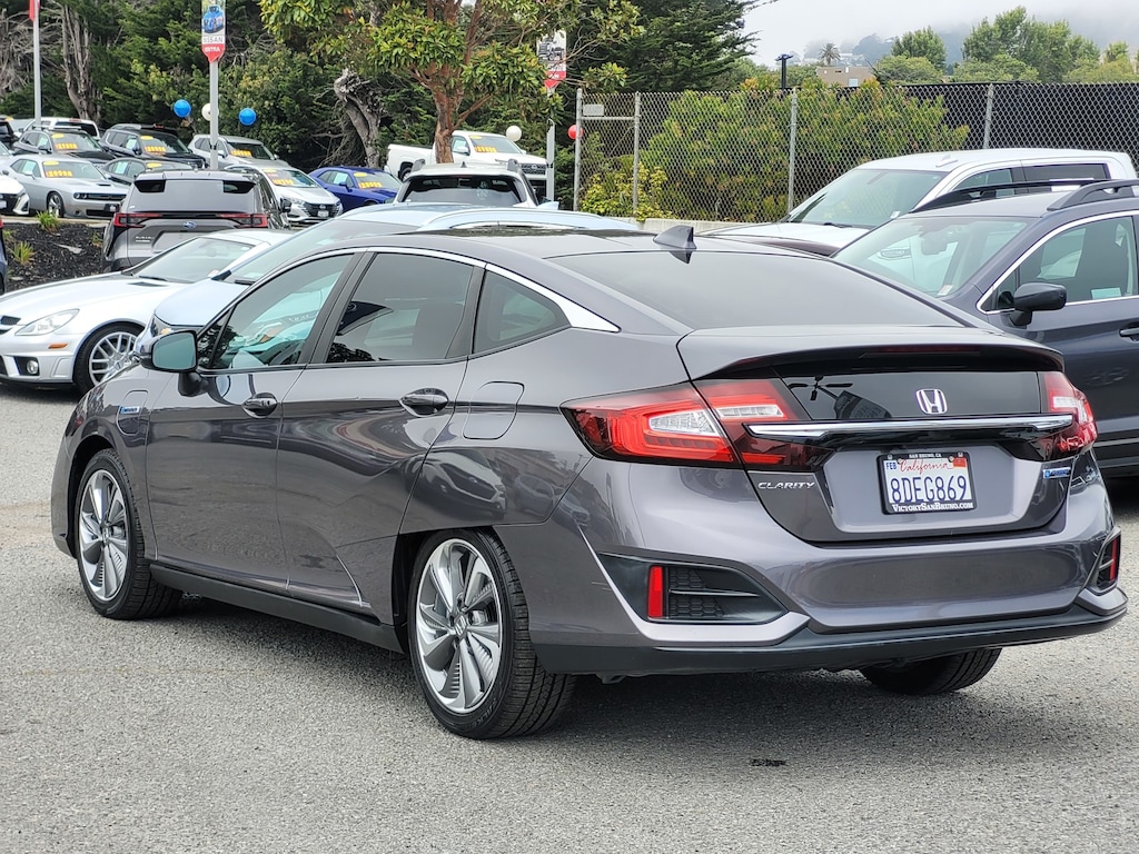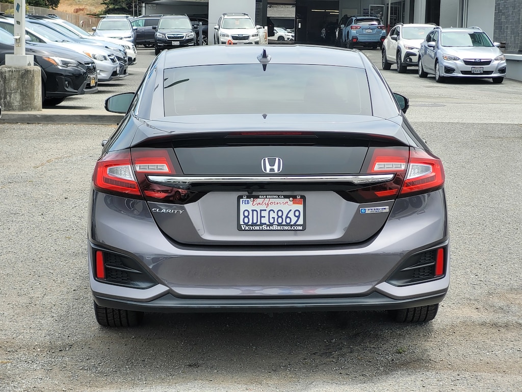 Clean CARFAX. CARFAX One-Owner. Modern Steel 2018 Honda Clarity Plug-In Hybrid FWD CVT I4 112 POINT INSPECTION, I4, 4-Wheel Disc Brakes, 8 Speakers, ABS brakes, Air Conditioning, Alloy wheels, AM/FM radio, Apple CarPlay/Android Auto, Auto-dimming Rear-View mirror, Automatic temperature control, Brake assist, Delay-off headlights, Dual front impact airbags, Dual front side impact airbags, Electronic Stability Control, Emergency communication system: HondaLink, Exterior Parking Camera Rear, Four wheel independent suspension, Front anti-roll bar, Front Bucket Seats, Front Center Armrest, Front dual zone A/C, Fully automatic headlights, Garage door transmitter: HomeLink, Heated Front Bucket Seats, Heated front seats, Knee airbag, Low tire pressure warning, Occupant sensing airbag, Outside temperature display, Overhead airbag, Panic alarm, Power door mirrors, Power steering, Power windows, Radio data system, Radio: 180-Watt AM/FM/HD/SiriusXM Audio System, Rear anti-roll bar, Rear window defroster, Remote keyless entry, Security system, Speed control, Speed-sensing steering, Speed-Sensitive Wipers, Split folding rear seat, Steering wheel mounted audio controls, Telescoping steering wheel, Tilt steering wheel, Traction control, Trip computer, Variably intermittent wipers, Wheels: 18" Hybrid Aerodynamic Alloy.