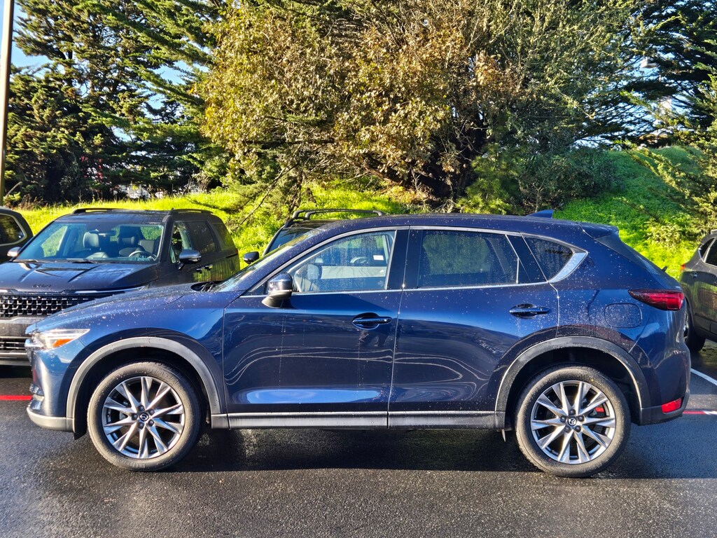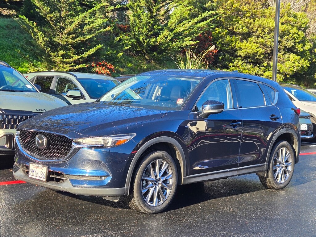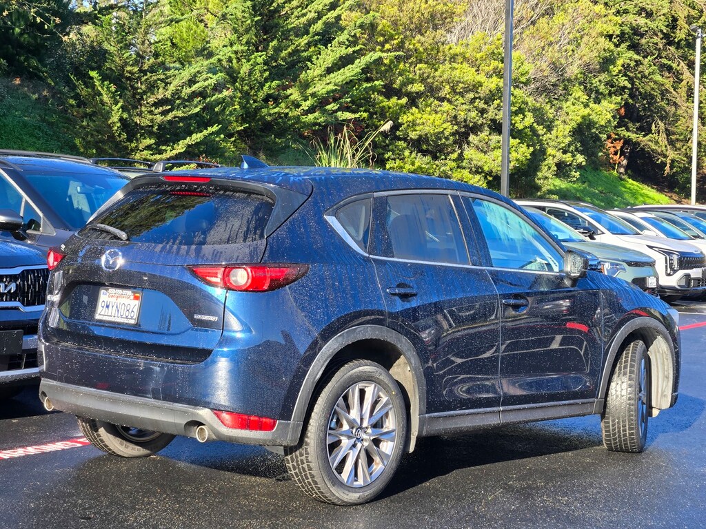 Deep Crystal Blue Mica 2021 Mazda CX-5 Grand Touring FWD 6-Speed Automatic SKYACTIV® 2.5L 4-Cylinder DOHC 16V 112 POINT INSPECTION, 10 Speakers, 4-Wheel Disc Brakes, ABS brakes, Air Conditioning, Alloy wheels, AM/FM radio: SiriusXM, AppLink/Apple CarPlay and Android Auto, Auto High-beam Headlights, Auto-dimming Rear-View mirror, Automatic temperature control, Bose 10-Speaker Premium Audio Sound System, Brake assist, Delay-off headlights, Dual front impact airbags, Dual front side impact airbags, Electronic Stability Control, Emergency communication system: MAZDA CONNECT, Exterior Parking Camera Rear, Four wheel independent suspension, Front anti-roll bar, Front Bucket Seats, Front Center Armrest, Front dual zone A/C, Fully automatic headlights, Garage door transmitter: HomeLink, Heated door mirrors, Heated Front Bucket Seats, Heated front seats, Leather Seat Trim, Leather Shift Knob, Low tire pressure warning, Memory seat, Occupant sensing airbag, Outside temperature display, Overhead airbag, Panic alarm, Power door mirrors, Power driver seat, Power Liftgate, Power moonroof, Power passenger seat, Power steering, Power windows, Radio data system, Radio: AM/FM/HD Audio System, Rain sensing wipers, Rear anti-roll bar, Rear window defroster, Rear window wiper, Remote keyless entry, Speed control, Speed-sensing steering, Split folding rear seat, Steering wheel mounted audio controls, Tachometer, Telescoping steering wheel, Tilt steering wheel, Traction control, Trip computer, Turn signal indicator mirrors, Variably intermittent wipers, Wheels: 19" x 7J Aluminum Alloy.
