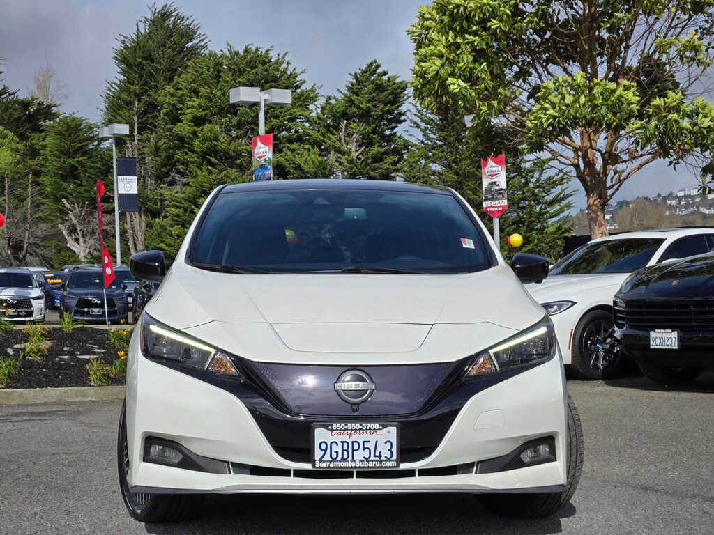 New Price! Clean CARFAX. Super Black/Pearl White 2023 Nissan Leaf SV Plus FWD Single Speed Reducer Electric Motor 112 POINT INSPECTION, NAVIGATION, 4-Wheel Disc Brakes, 6 Speakers, ABS brakes, Air Conditioning, Alloy wheels, AM/FM radio: SiriusXM, Auto High-beam Headlights, Auto-dimming Rear-View mirror, Automatic temperature control, Brake assist, Delay-off headlights, Dual front impact airbags, Dual front side impact airbags, Electronic Stability Control, Emergency communication system: NissanConnect Services, Front anti-roll bar, Front Bucket Seats, Front Center Armrest, Front wheel independent suspension, Fully automatic headlights, Heated door mirrors, Heated Front Bucket Seats, Heated front seats, Heated steering wheel, Knee airbag, Low tire pressure warning, Navigation system: NissanConnect EV w/Navigation & Services, NissanConnect featuring Apple CarPlay and Android Auto, NissanConnect Services Powered by SiriusXM, Occupant sensing airbag, Outside temperature display, Overhead airbag, Panic alarm, Power door mirrors, Power driver seat, Power steering, Power windows, Radio data system, Radio: NissanConnect EV w/Navigation/SiriusXM, Rear anti-roll bar, Rear side impact airbag, Rear window defroster, Rear window wiper, Remote keyless entry, Safety Kit, Security system, Siri Eyes Free, Speed control, Speed-sensing steering, Split folding rear seat, Steering wheel mounted audio controls, Telescoping steering wheel, Tilt steering wheel, Traction control, Trip computer, Variably intermittent wipers, Wheels: 17" Machined Finish Aluminum Alloy.