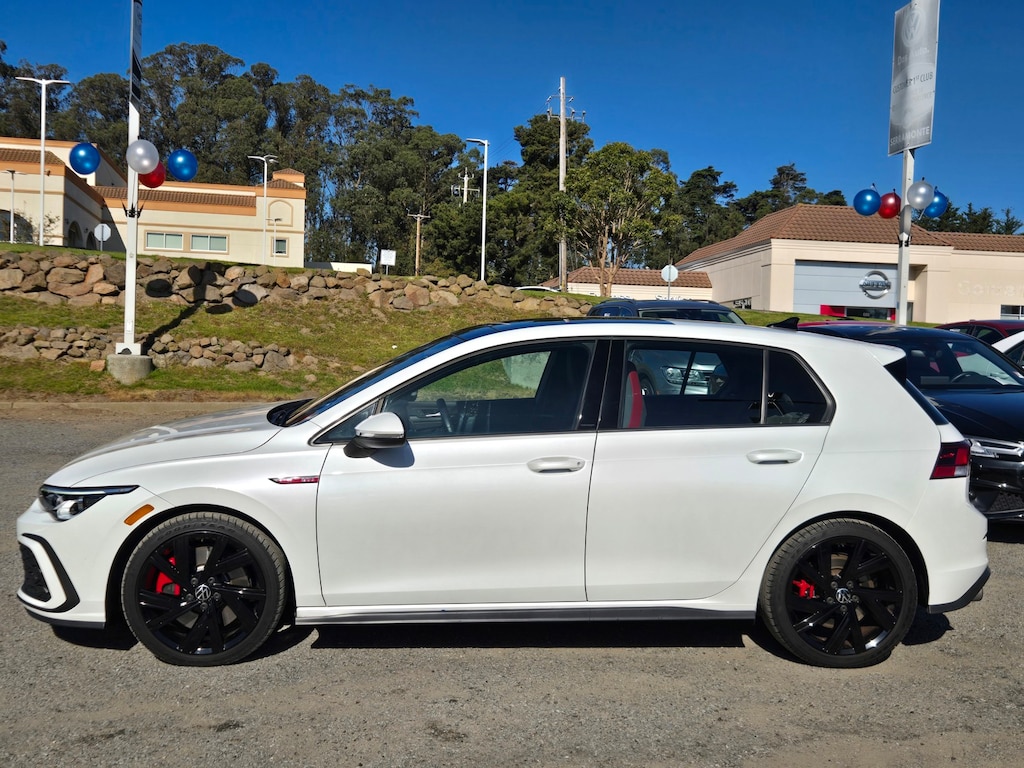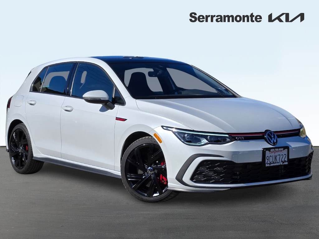 New Price! Clean CARFAX. CARFAX One-Owner. White 2022 Volkswagen Golf GTI 2.0T SE FWD 7-Speed DSG Automatic with Tiptronic 2.0L TSI DOHC 112 POINT INSPECTION, NAVIGATION, 4-Wheel Disc Brakes, 9 Speakers, ABS brakes, Air Conditioning, Alloy wheels, AM/FM radio: SiriusXM with 360L, Auto-dimming Rear-View mirror, Automatic temperature control, Brake assist, Cloth Seating Surfaces, Compass, Delay-off headlights, Dual front impact airbags, Dual front side impact airbags, Electronic Stability Control, Emergency communication system: VW Car-Net services (capabilities require enrollment or subscription), Exterior Parking Camera Rear, Forward collision: FCW w/Autonomous Emergency Braking mitigation, Four wheel independent suspension, Front anti-roll bar, Front Bucket Seats, Front Center Armrest, Fully automatic headlights, harman/kardon® Speakers, Heated door mirrors, Heated front seats, Heated Front Top Sport Seats, Heated steering wheel, Lane Departure Warning System, Leather steering wheel, Low tire pressure warning, Navigation System, Occupant sensing airbag, Outside temperature display, Overhead airbag, Panic alarm, Power door mirrors, Power driver seat, Power moonroof: Panoramic, Power passenger seat, Power steering, Power windows, Radio data system, Radio: MIB3 Discover Pro w/10" Touchscreen Navi, Rain sensing wipers, Rear anti-roll bar, Rear window defroster, Rear window wiper, Remote keyless entry, Security system, Speed control, Speed-sensing steering, Speed-Sensitive Wipers, Split folding rear seat, Spoiler, Sport steering wheel, Steering wheel mounted audio controls, Tachometer, Telescoping steering wheel, Tilt steering wheel, Traction control, Trip computer, Turn signal indicator mirrors, Variably intermittent wipers, Wheels: 18" x 7.5J 2-Tone Machined Alloy.