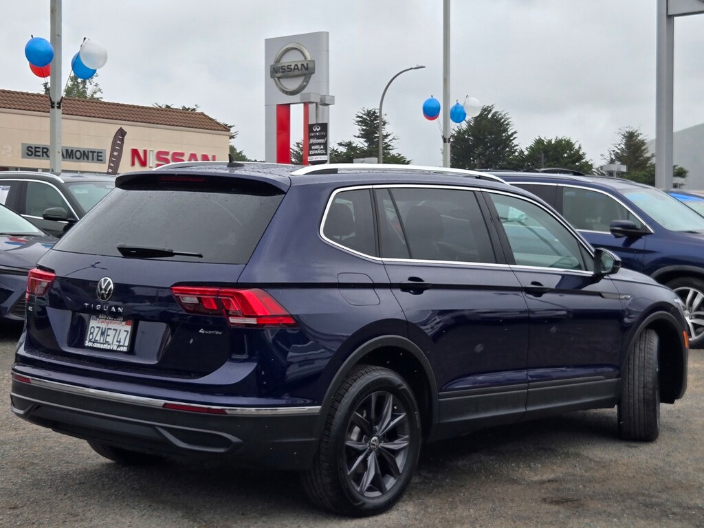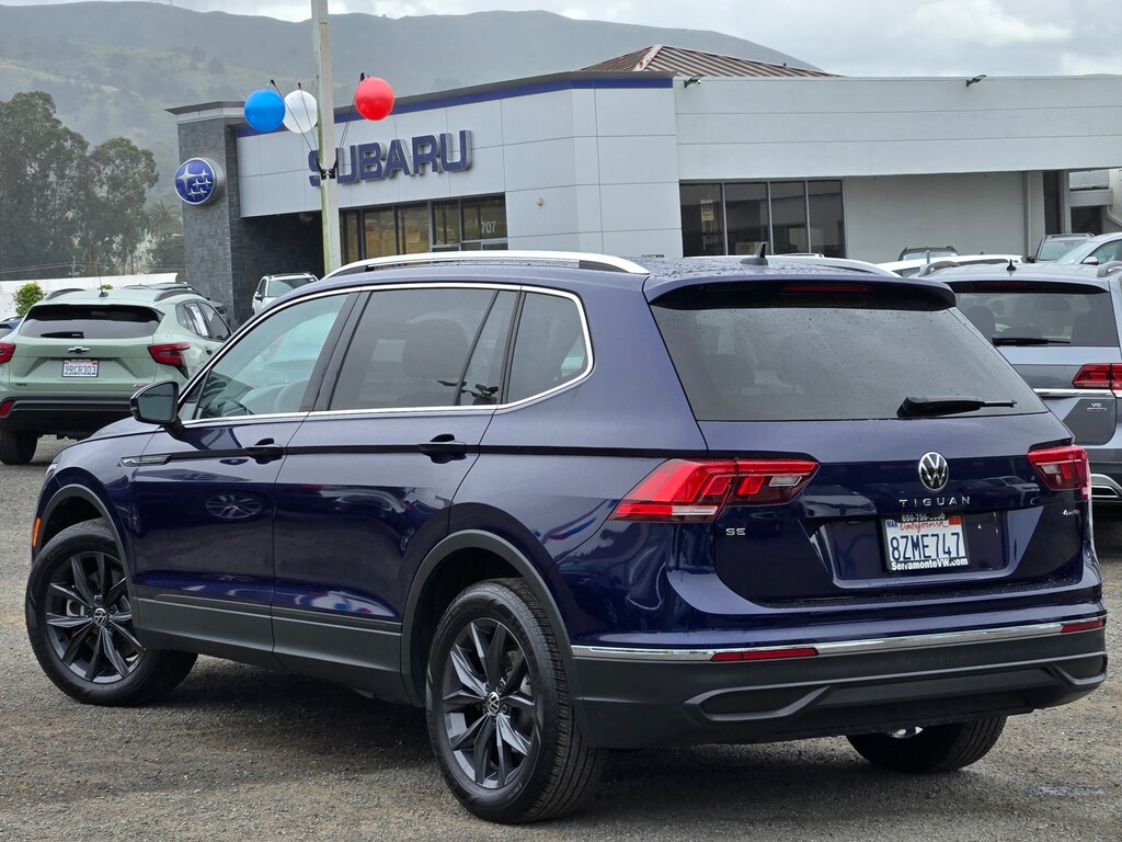 New Price! Clean CARFAX. CARFAX One-Owner. Atlantic Blue Metallic 2022 Volkswagen Tiguan 2.0T SE AWD 8-Speed Automatic with Tiptronic 2.0L TSI DOHC 112 POINT INSPECTION, AWD, 4-Wheel Disc Brakes, 4-Wheel Independent Suspension, 6 Speakers, ABS brakes, Air Conditioning, Alloy wheels, AM/FM radio: SiriusXM with 360L, Auto-dimming Rear-View mirror, Automatic temperature control, Brake assist, Compass, Delay-off headlights, Dual front impact airbags, Dual front side impact airbags, Electronic Stability Control, Emergency communication system: Car-Net, Exterior Parking Camera Rear, Four wheel independent suspension, Front anti-roll bar, Front Bucket Seats, Front Center Armrest, Front dual zone A/C, Fully automatic headlights, Heated door mirrors, Heated Front Comfort Seats, Heated front seats, Illuminated entry, Leather Shift Knob, Low tire pressure warning, Occupant sensing airbag, Outside temperature display, Overhead airbag, Panic alarm, Panoramic Sunroof Package, Perforated V-Tex Leatherette Seating Surfaces, Power door mirrors, Power driver seat, Power Liftgate, Power steering, Power windows, Radio data system, Radio: MIB3 Composition Media AM/FM/HD, Rain sensing wipers, Rear anti-roll bar, Rear window defroster, Rear window wiper, Remote keyless entry, Security system, Speed control, Speed-sensing steering, Split folding rear seat, Spoiler, Steering wheel mounted audio controls, Tachometer, Telescoping steering wheel, Tilt steering wheel, Traction control, Trip computer, Turn signal indicator mirrors, Variably intermittent wipers, Wheels: 18" Dark Graphite 10-Spoke Alloy.