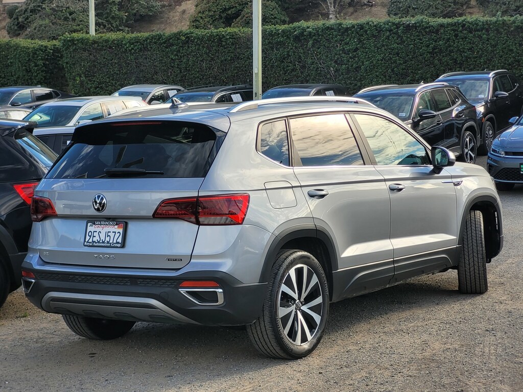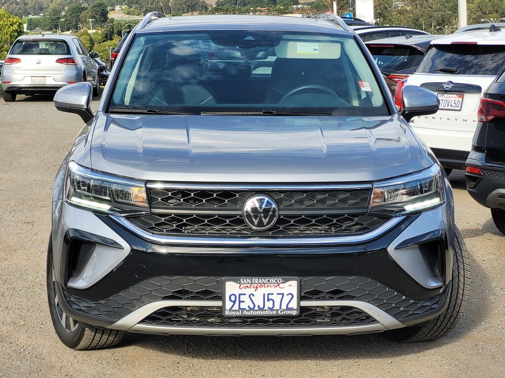 Clean CARFAX. CARFAX One-Owner. Silver Metallic 2023 Volkswagen Taos 1.5T SE AWD 7-Speed DSG Automatic with Tiptronic 1.5L I4 Turbocharged DOHC 16V LEV3-SULEV30 158hp 112 POINT INSPECTION, 4-Wheel Disc Brakes, 6 Speakers, ABS brakes, Active Blind Spot Monitor, Air Conditioning, Alloy wheels, AM/FM radio: SiriusXM with 360L, Auto High-beam Headlights, Brake assist, CloudTex & Cloth Seating Surfaces, Compass, Delay-off headlights, Dual front impact airbags, Dual front side impact airbags, Electronic Stability Control, Emergency communication system: VW Car-Net Safe & Secure 5-year, Exterior Parking Camera Rear, Four wheel independent suspension, Front anti-roll bar, Front Bucket Seats, Front Center Armrest, Fully automatic headlights, Heated door mirrors, Heated Front Comfort Seats, Heated front seats, Heated steering wheel, Leather Shift Knob, Low tire pressure warning, Occupant sensing airbag, Outside temperature display, Overhead airbag, Panic alarm, Panoramic Sunroof Package, Power door mirrors, Power driver seat, Power steering, Power windows, Radio data system, Radio: MIB3 Composition Media AM/FM/HD, Rain sensing wipers, Rear anti-roll bar, Rear window defroster, Rear window wiper, Remote keyless entry, Security system, Speed control, Speed-sensing steering, Split folding rear seat, Steering wheel mounted audio controls, Tachometer, Telescoping steering wheel, Tilt steering wheel, Traction control, Trip computer, Variably intermittent wipers, Wheels: 18" 2-Tone Machined Alloy.