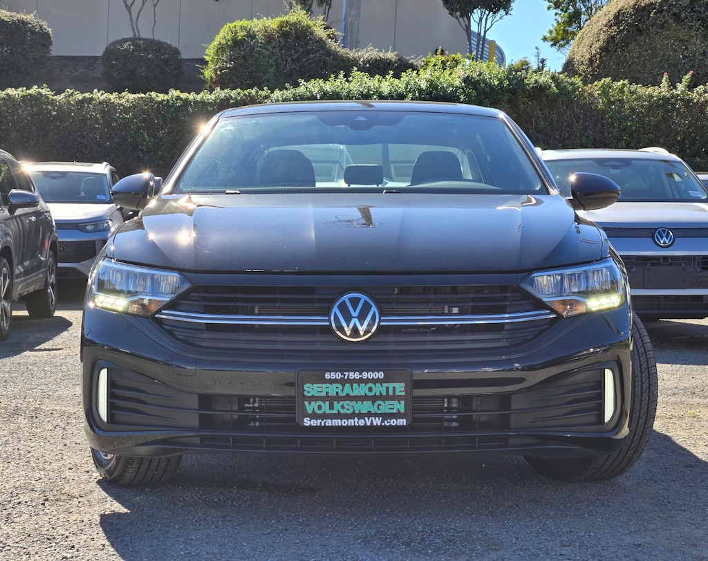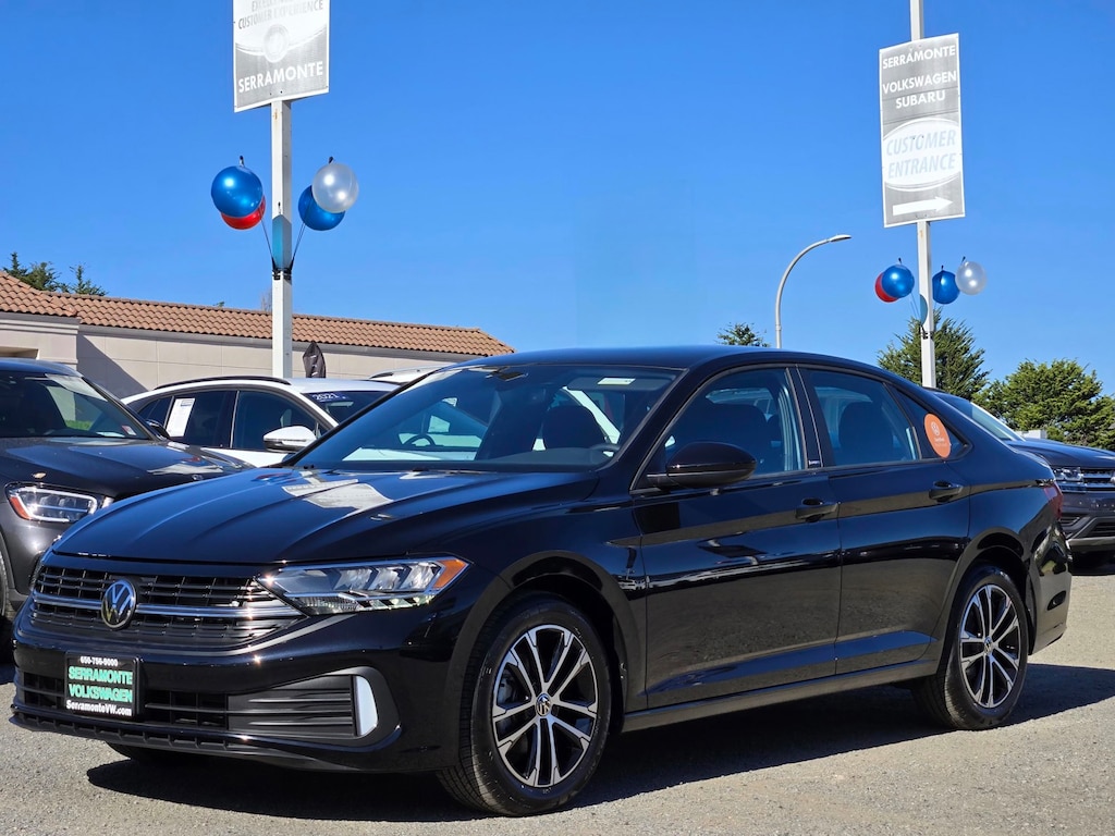 New Price! Clean CARFAX. Certified. Deep Black 2024 Volkswagen Jetta 1.5T Sport FWD 8-Speed Automatic with Tiptronic 1.5L I-4 DI DOHC Turbocharged 112 POINT INSPECTION, Black Cloth, 4 Speakers, 4-Wheel Disc Brakes, ABS brakes, Active Blind Spot Monitor, Air Conditioning, Alloy wheels, Auto-dimming Rear-View mirror, Brake assist, Delay-off headlights, Dual front impact airbags, Dual front side impact airbags, Electronic Stability Control, Emergency communication system: VW Car-Net Safe & Secure 5-year, Exterior Parking Camera Rear, Front anti-roll bar, Front Bucket Seats, Front Center Armrest, Front wheel independent suspension, Fully automatic headlights, Heated door mirrors, Heated Front Seats, Heated front seats, Leather Shift Knob, Leather steering wheel, Low tire pressure warning, Occupant sensing airbag, Outside temperature display, Overhead airbag, Panic alarm, Power door mirrors, Power steering, Power windows, Radio data system, Radio: MIB3 Composition Color w/6.5" Touchscreen, Rain sensing wipers, Rear anti-roll bar, Rear window defroster, Remote keyless entry, Security Wheel Locks & Dust Caps (4 each) w/Key, Speed control, Speed-sensing steering, Split folding rear seat, Steering wheel mounted audio controls, Tachometer, Telescoping steering wheel, Tilt steering wheel, Traction control, Trip computer, Variably intermittent wipers, Wheels: 17" 2-Tone Machined Alloy.