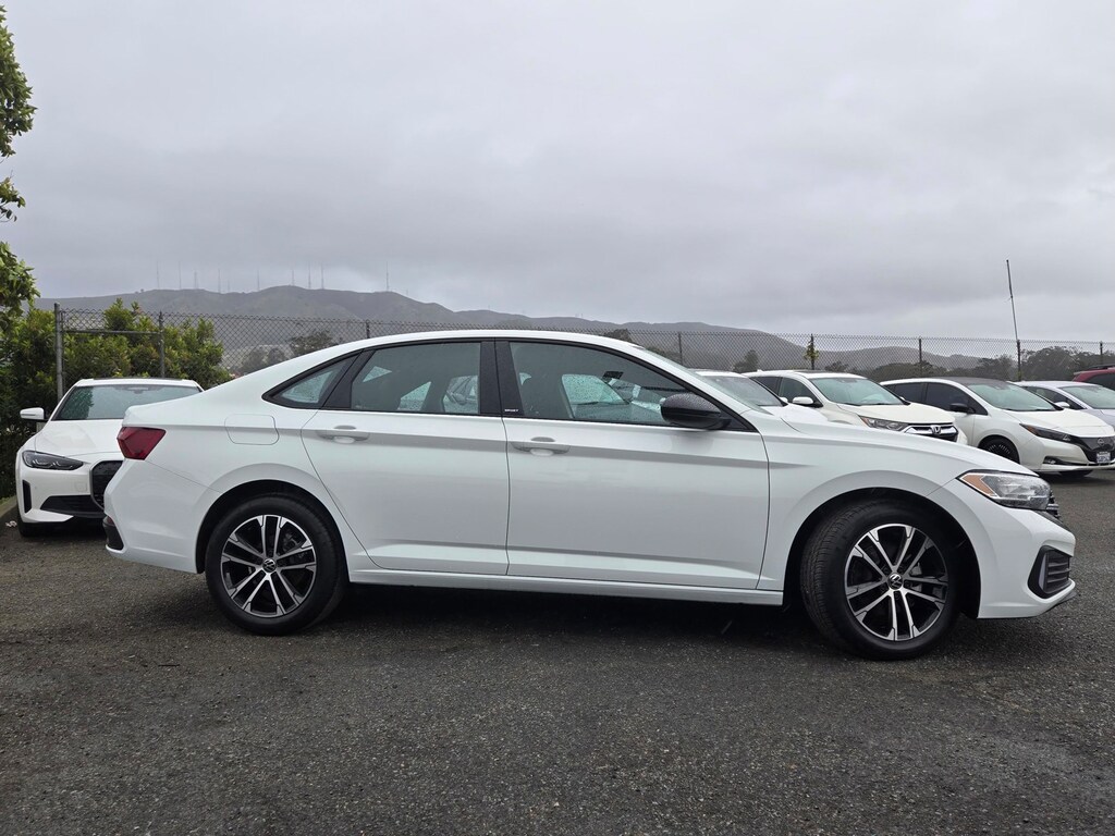 Clean CARFAX. Pure White 2024 Volkswagen Jetta 1.5T Sport FWD 8-Speed Automatic with Tiptronic 1.5L I-4 DI DOHC Turbocharged 112 POINT INSPECTION, Black Cloth, 4 Speakers, 4-Wheel Disc Brakes, ABS brakes, Active Blind Spot Monitor, Air Conditioning, Alloy wheels, Auto-dimming Rear-View mirror, Brake assist, Delay-off headlights, Dual front impact airbags, Dual front side impact airbags, Electronic Stability Control, Emergency communication system: VW Car-Net Safe & Secure 5-year, Exterior Parking Camera Rear, Front anti-roll bar, Front Bucket Seats, Front Center Armrest, Front wheel independent suspension, Fully automatic headlights, Heated door mirrors, Heated Front Seats, Heated front seats, Leather Shift Knob, Leather steering wheel, Low tire pressure warning, Occupant sensing airbag, Outside temperature display, Overhead airbag, Panic alarm, Power door mirrors, Power steering, Power windows, Radio data system, Radio: MIB3 Composition Color w/6.5" Touchscreen, Rain sensing wipers, Rear anti-roll bar, Rear window defroster, Remote keyless entry, Security Wheel Locks & Dust Caps (4 each) w/Key, Speed control, Speed-sensing steering, Split folding rear seat, Steering wheel mounted audio controls, Tachometer, Telescoping steering wheel, Tilt steering wheel, Traction control, Trip computer, Variably intermittent wipers, Wheels: 17" 2-Tone Machined Alloy.