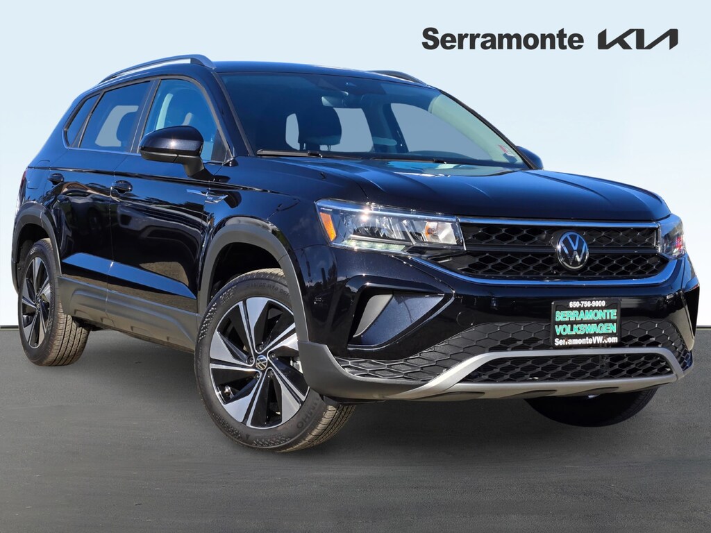 New Price! Clean CARFAX. Black 2024 Volkswagen Taos 1.5T SE AWD 7-Speed DSG Automatic with Tiptronic 1.5L I4 Turbocharged DOHC 16V LEV3-SULEV30 158hp 112 POINT INSPECTION, 4-Wheel Disc Brakes, 6 Speakers, ABS brakes, Active Blind Spot Monitor, Air Conditioning, Alloy wheels, AM/FM radio: SiriusXM with 360L, Auto High-beam Headlights, Automatic temperature control, Brake assist, CloudTex & Cloth Seating Surfaces, Compass, Delay-off headlights, Dual front impact airbags, Dual front side impact airbags, Electronic Stability Control, Emergency communication system: VW Car-Net Safe & Secure 5-year, Exterior Parking Camera Rear, Four wheel independent suspension, Front anti-roll bar, Front Bucket Seats, Front Center Armrest, Front dual zone A/C, Fully automatic headlights, Heated door mirrors, Heated Front Bucket Seats, Heated front seats, Heated steering wheel, Leather Shift Knob, Low tire pressure warning, Occupant sensing airbag, Outside temperature display, Overhead airbag, Panic alarm, Power door mirrors, Power driver seat, Power steering, Power windows, Radio data system, Radio: MIB3 Composition Media AM/FM/HD, Rain sensing wipers, Rear anti-roll bar, Rear window defroster, Rear window wiper, Remote keyless entry, Security system, Speed control, Speed-sensing steering, Split folding rear seat, Steering wheel mounted audio controls, Tachometer, Telescoping steering wheel, Tilt steering wheel, Traction control, Trip computer, Variably intermittent wipers, Wheels: 18" 2-Tone Machined Alloy.