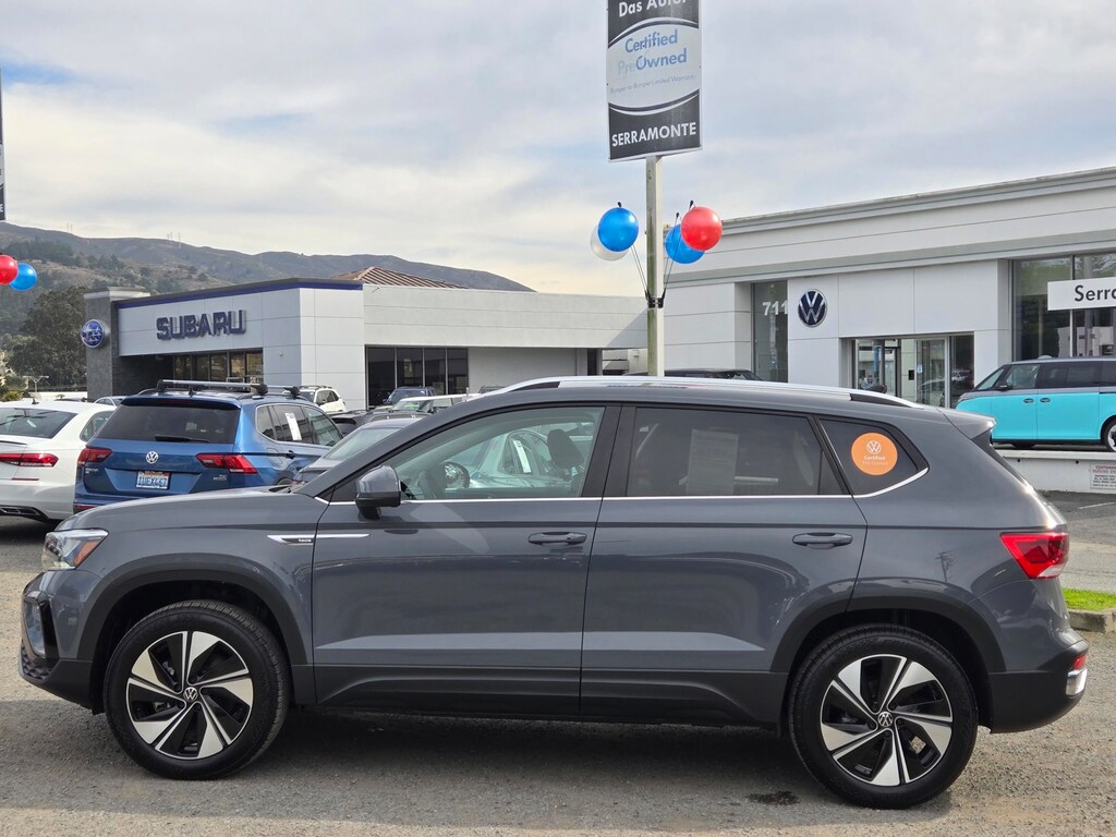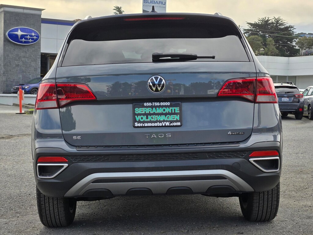 Clean CARFAX. Gray 2024 Volkswagen Taos 1.5T SE AWD 7-Speed DSG Automatic with Tiptronic 1.5L I4 Turbocharged DOHC 16V LEV3-SULEV30 158hp 112 POINT INSPECTION, 4-Wheel Disc Brakes, 6 Speakers, ABS brakes, Active Blind Spot Monitor, Air Conditioning, Alloy wheels, AM/FM radio: SiriusXM with 360L, Auto High-beam Headlights, Automatic temperature control, Brake assist, CloudTex & Cloth Seating Surfaces, Compass, Delay-off headlights, Dual front impact airbags, Dual front side impact airbags, Electronic Stability Control, Emergency communication system: VW Car-Net Safe & Secure 5-year, Exterior Parking Camera Rear, Four wheel independent suspension, Front anti-roll bar, Front Bucket Seats, Front Center Armrest, Front dual zone A/C, Fully automatic headlights, Heated door mirrors, Heated Front Bucket Seats, Heated front seats, Heated steering wheel, Leather Shift Knob, Low tire pressure warning, Occupant sensing airbag, Outside temperature display, Overhead airbag, Panic alarm, Power door mirrors, Power driver seat, Power steering, Power windows, Radio data system, Radio: MIB3 Composition Media AM/FM/HD, Rain sensing wipers, Rear anti-roll bar, Rear window defroster, Rear window wiper, Remote keyless entry, Security system, Speed control, Speed-sensing steering, Split folding rear seat, Steering wheel mounted audio controls, Tachometer, Telescoping steering wheel, Tilt steering wheel, Traction control, Trip computer, Variably intermittent wipers, Wheels: 18" 2-Tone Machined Alloy.