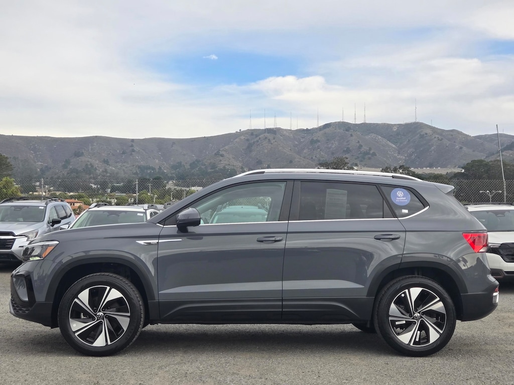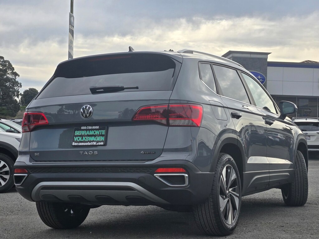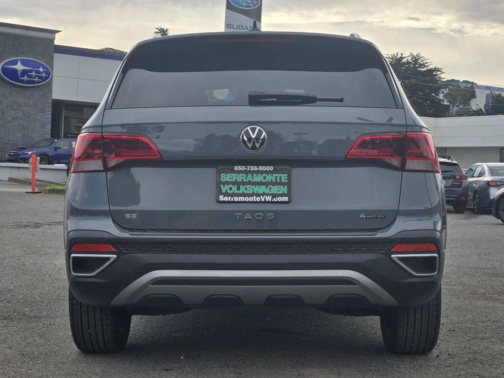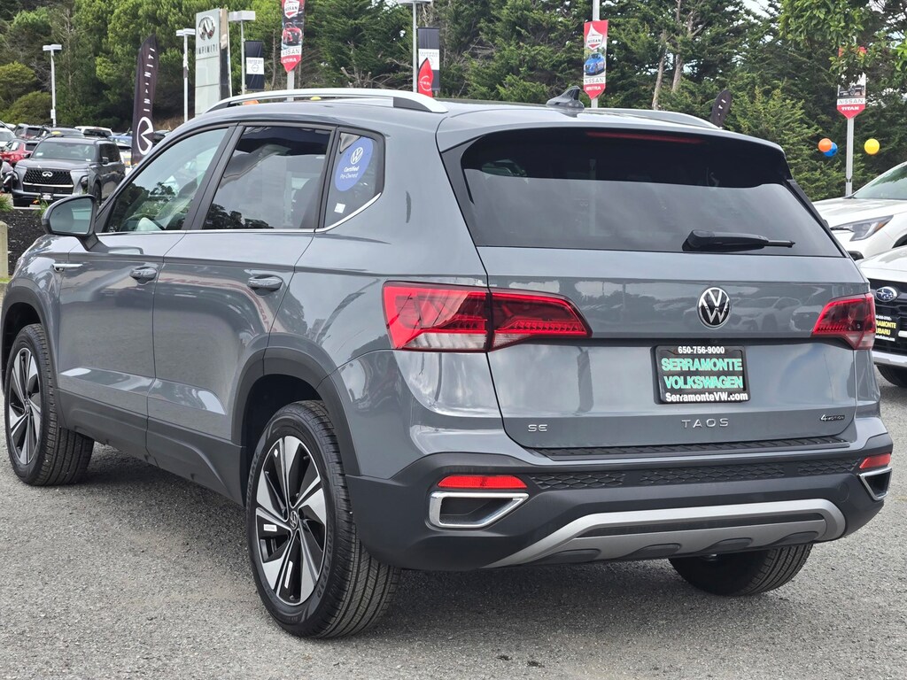 Clean CARFAX. Gray 2024 Volkswagen Taos 1.5T SE AWD 7-Speed DSG Automatic with Tiptronic 1.5L I4 Turbocharged DOHC 16V LEV3-SULEV30 158hp 112 POINT INSPECTION, 4-Wheel Disc Brakes, 6 Speakers, ABS brakes, Active Blind Spot Monitor, Air Conditioning, Alloy wheels, AM/FM radio: SiriusXM with 360L, Auto High-beam Headlights, Automatic temperature control, Brake assist, CloudTex & Cloth Seating Surfaces, Compass, Delay-off headlights, Dual front impact airbags, Dual front side impact airbags, Electronic Stability Control, Emergency communication system: VW Car-Net Safe & Secure 5-year, Exterior Parking Camera Rear, Four wheel independent suspension, Front anti-roll bar, Front Bucket Seats, Front Center Armrest, Front dual zone A/C, Fully automatic headlights, Heated door mirrors, Heated Front Bucket Seats, Heated front seats, Heated steering wheel, Leather Shift Knob, Low tire pressure warning, Occupant sensing airbag, Outside temperature display, Overhead airbag, Panic alarm, Power door mirrors, Power driver seat, Power steering, Power windows, Radio data system, Radio: MIB3 Composition Media AM/FM/HD, Rain sensing wipers, Rear anti-roll bar, Rear window defroster, Rear window wiper, Remote keyless entry, Security system, Speed control, Speed-sensing steering, Split folding rear seat, Steering wheel mounted audio controls, Tachometer, Telescoping steering wheel, Tilt steering wheel, Traction control, Trip computer, Variably intermittent wipers, Wheels: 18" 2-Tone Machined Alloy.